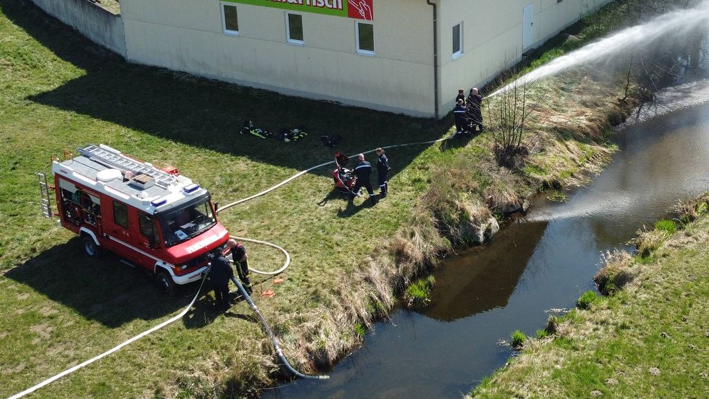 Um die Unterschiede in der Handhabung baugleicher Geräte verschiedener Hersteller aufzuzeigen, kamen bewusst unterschiedliche Modelle zum Einsatz. Zum Abschluss wurde eine Wasserförderung über eine längere Strecke von rund 420 Metern sowie einen Höhenunterschied von etwa 40 Metern aufgebaut. Nach der theoretischen Berechnung von Druckverlust und erforderlicher Anzahl an Tragkraftspritzen setzten die Teilnehmer diese Übung auch praktisch um.